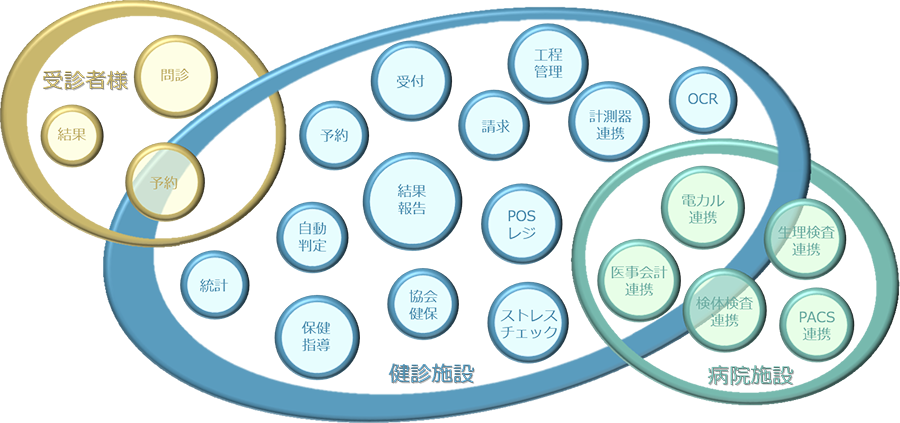 健診業務に必要な機能を全て取り揃えた総合健診システムです。